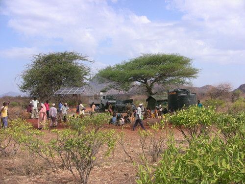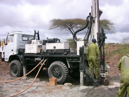 It is not a simple matter to drill boreholes in Africa! There are all kinds of engineering reports that are needed to determine where we should drill; different materials have to be used in the varying soils of Kenya, rendering the drilling process complex. Usually, the boreholes are not in places with regular power from an electric company. We have to make arrangements for a diesel or solar powered pump. The more capacity that is needed, the more expensive the pump, and the more complex the installation. The photo below is of our drilling rig operating in a rural area that is desperate for water. With clean water only 600 feet below the surface, imagine the burden of having to draw water from a stream or pond (probably not clean water) and then walk several miles home carrying heavy water in a plastic can or bucket.